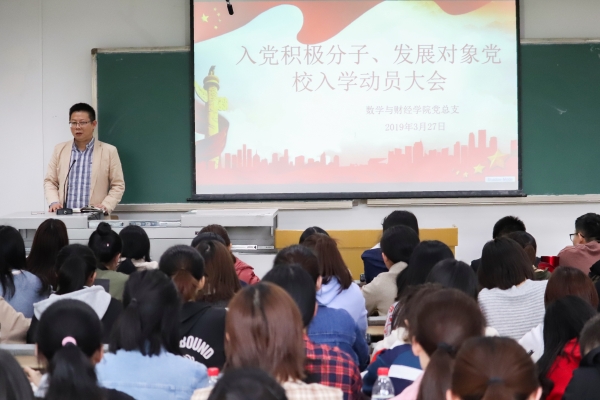 2019年3月27日下午3:00,bw必威西汉姆联在知津楼D303成功举行了中共入党积极分子、发展对象党校入学动员大会。bw必威西汉姆联党总支书记余大鹏,学生第一党支部书记王海萍,学生第二党支部组织委员邹佳桃和学生第四党支部书记李亚出席了本次大会。bw必威西汉姆联各级入党积极分子九十余人,发展对象二十余人参与了此次大会。