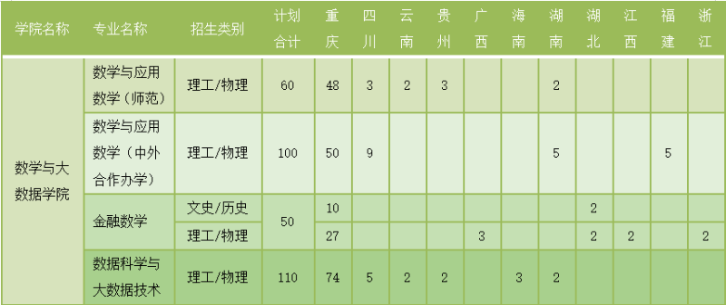 2022年数学与大数据学院分省招生计划