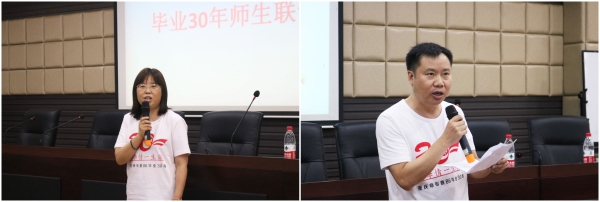 大会开始,颜敬先老师举行了上课仪式,希望年富力强的同学们继续努力,同时重视健康。接着,谢华琳代表校友会对校友们三十载重聚表示热烈欢迎,并介绍了校友会的蓬勃发展和活动开展情况,使得老校友们的联络更加密切,希望校友们积极关心母校的变化与发展,并积极为母校发展建言献策、积极宣传母校。然后,万书辉代表学校欢迎校友们回家,他真诚感谢长期以来校友们对母校的关心和支持,并向校友们详细地介绍了学校的发展情况和亮点。