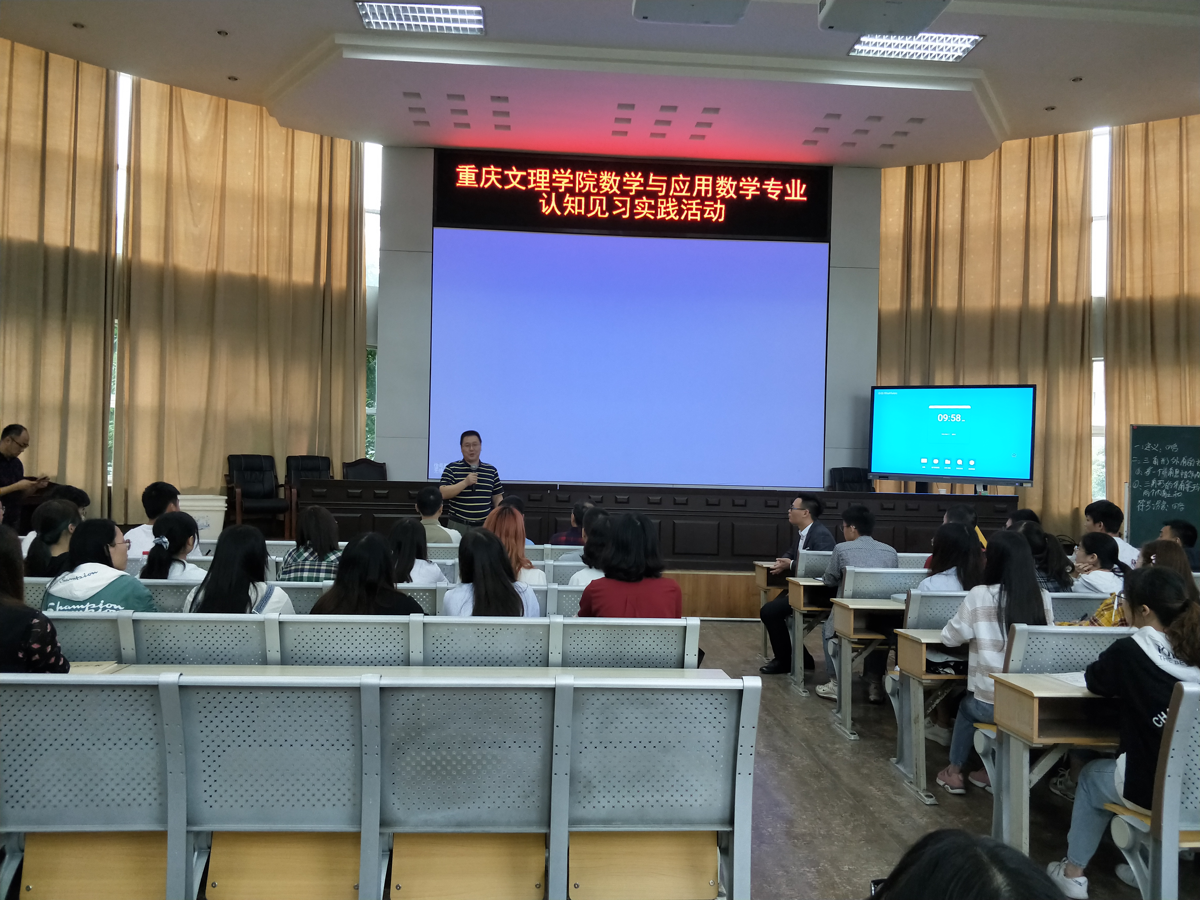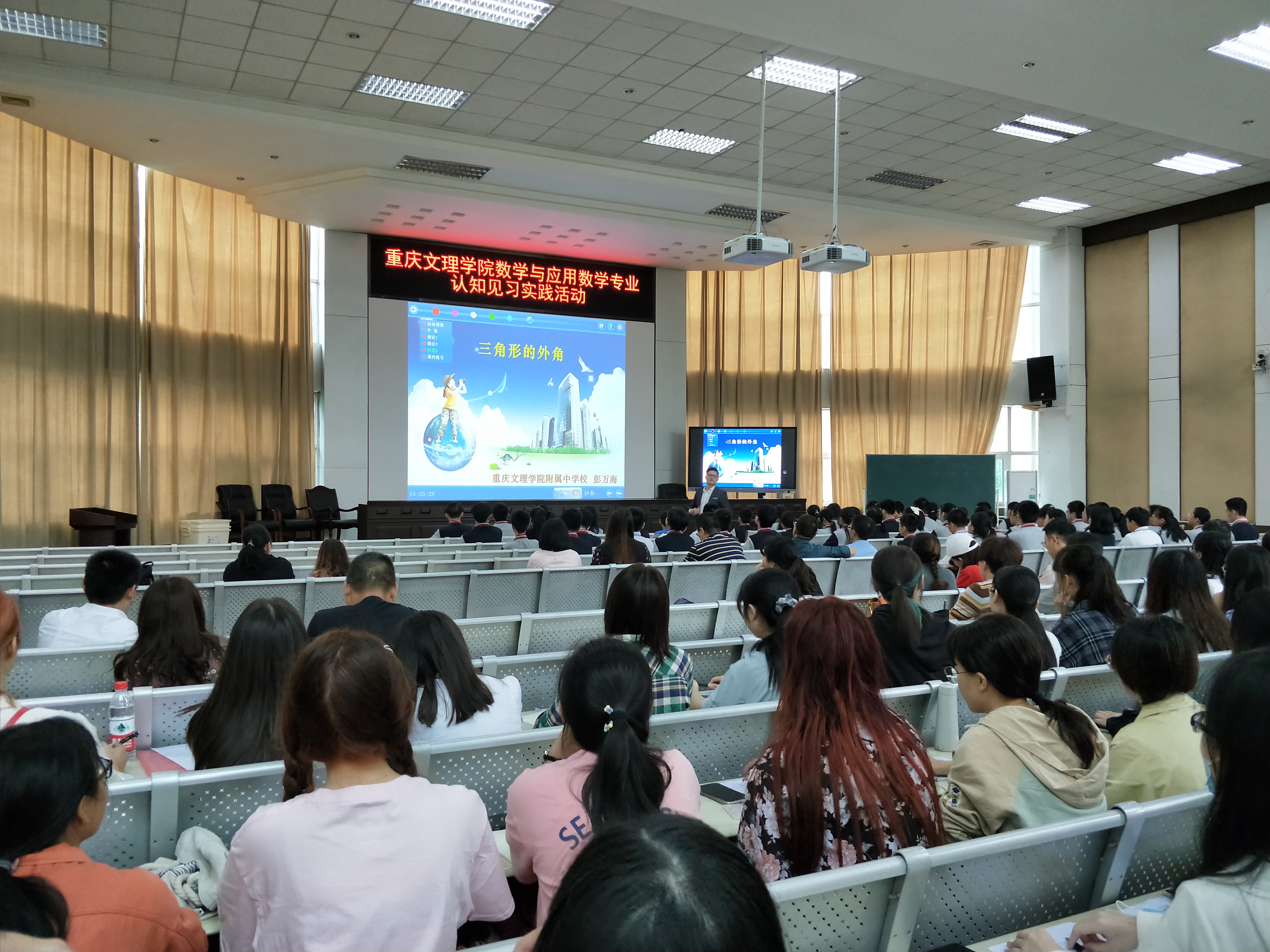 9月16日下午15:30,在重庆文理学院附属中学校聚贤楼三楼学术报告厅,bw必威西汉姆联2019级数学与应用数学(师范)专业全体同学参加了认知见习活动,专业教师贾小勇、郭淑娅、王思义一同前往。活动由文理附中教科室主任朱键主持,文理附中初中数学全体教师参加了活动。