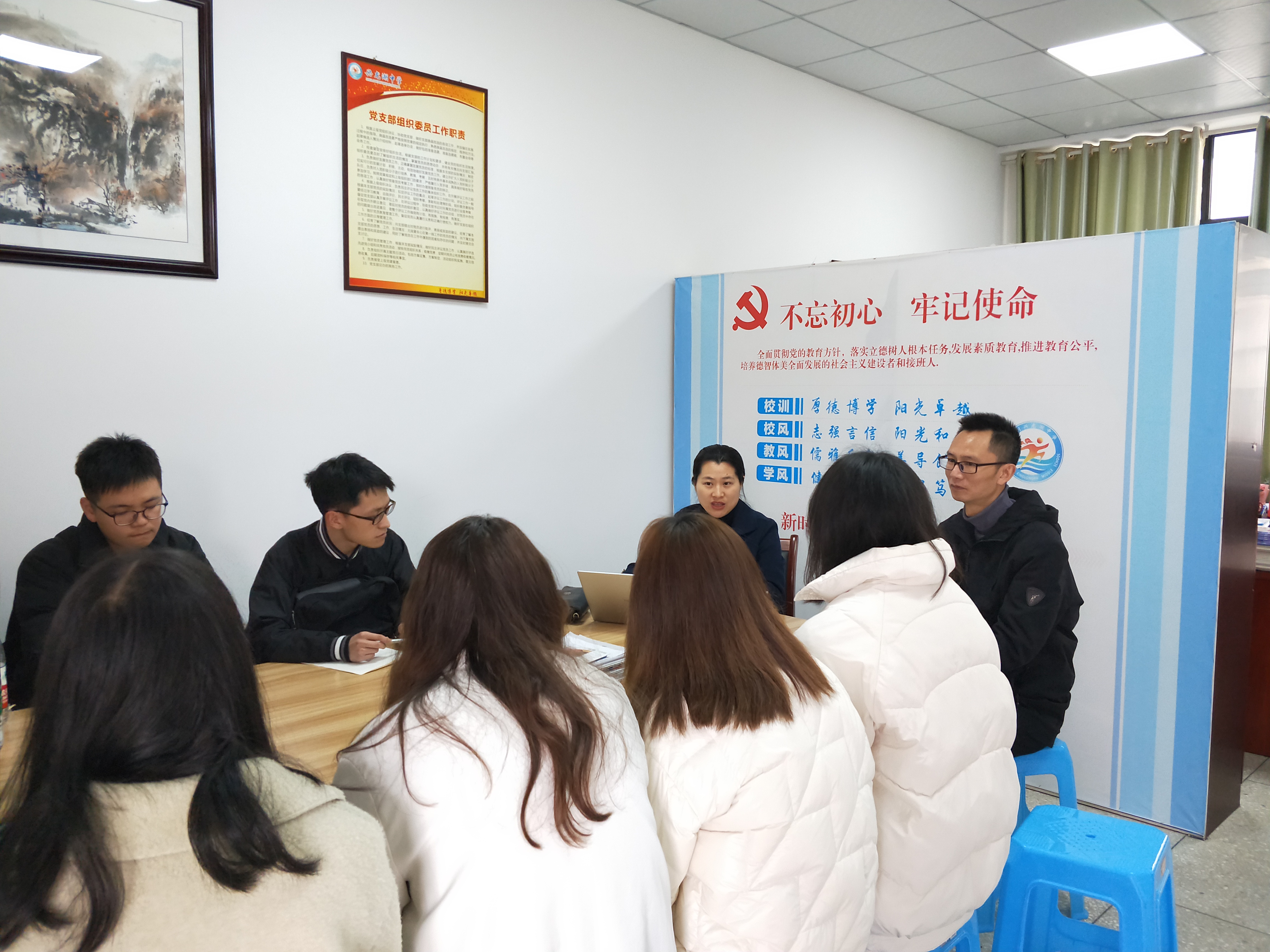 师生见面会首先由实习学校领导简单介绍此次教育实习的目标,以及实习学校的具体安排,着重介绍了实习工作流程以及注意事项,要求实习生明确自己的角色定位,虚心请教,认真工作,展现风采。陈院长在见面会上也要求全体实习生必须遵守学校和二级学院有关实习规定,尊重指导老师,学习教学方法,积极参加教研活动,提升教学能力。会议最后,实习生分别与自己的指导教师进行了沟通交流。