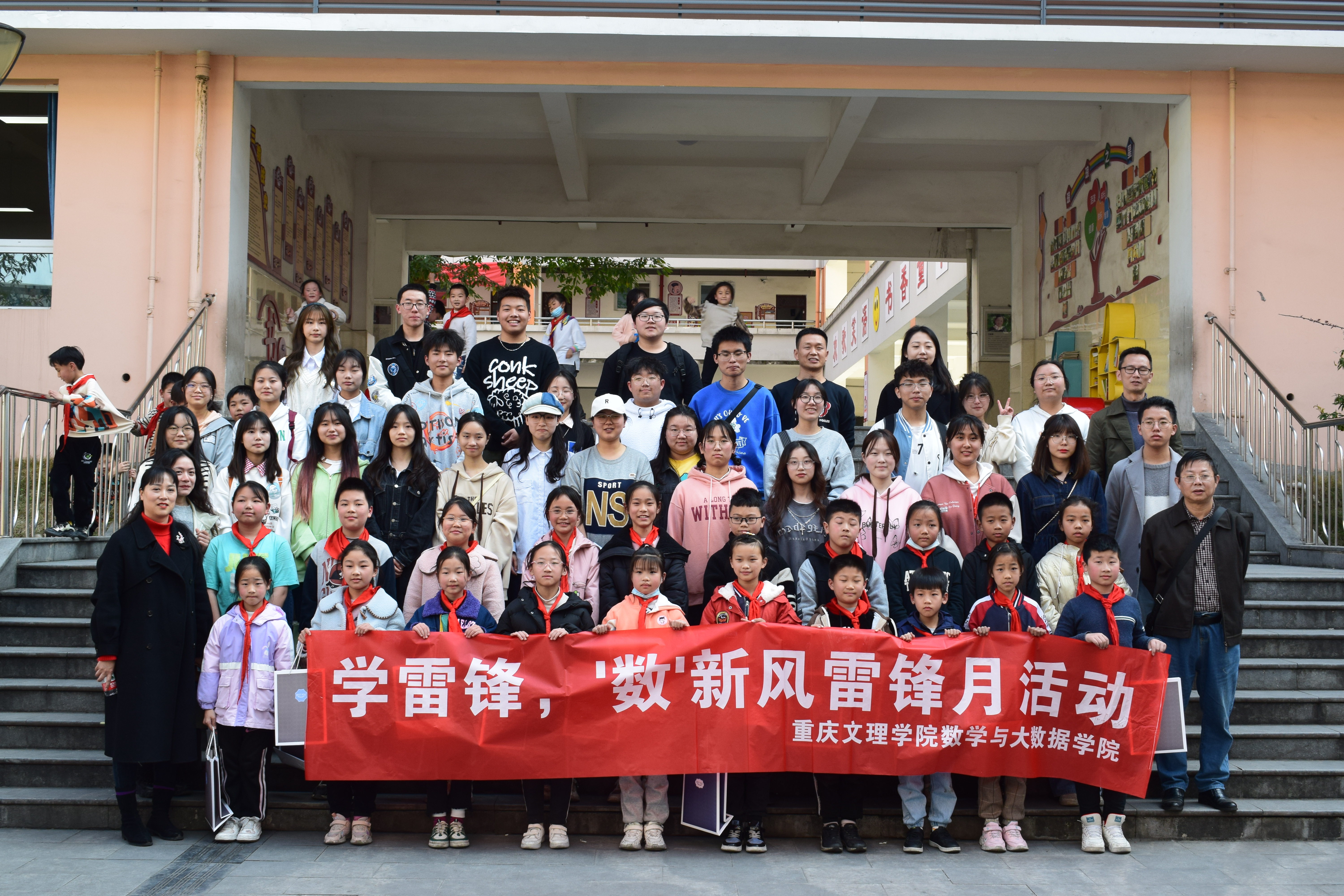 为深入贯彻落实习近平总书记关于弘扬雷锋精神的重要指示精神,将学雷锋志愿服务活动融入新时代文明实践活动,学院以“开学第一课”系列活动为契机,于 3月30日下午前往永川区三教小学开展了“学雷锋,‘数’新风”雷锋月志愿服务活动。永川区三教镇政府何主席、三教小学肖主任,学院党总支书记余大鹏、副书记陈晓东、辅导员和学院志愿服务队30余名同学参加了活动。
