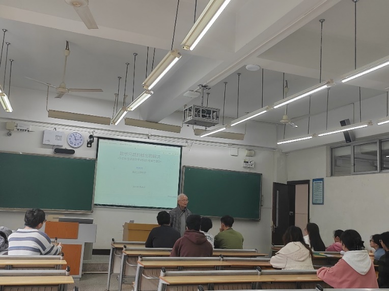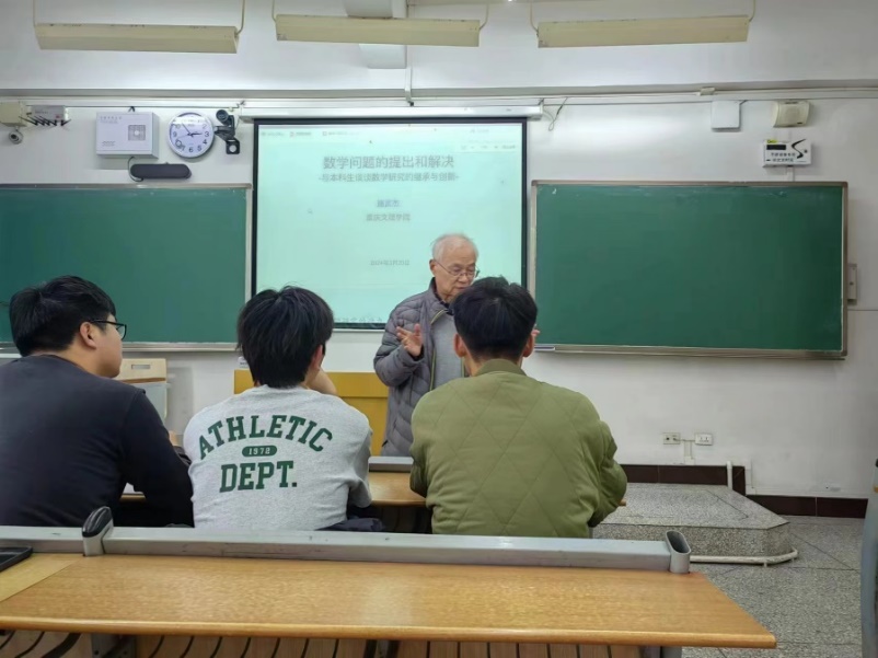 施教授结合自身经历,向同学们讲解了数论的相关知识、研究问题的思维方法。他结合自己学生时期对反函数的疑惑和思考过程,告诉同学们如何学会提问、学会思考,旨在让同学们意识到提问和思考在学习上的重要性。本次报告会上,每位同学都在认真学习,积极提问,受益匪浅。