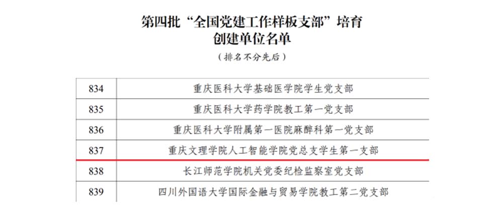 近日,教育部办公厅公布第四批全国必威西汉姆联示范高校、标杆院系、样板支部培育创建单位名单,bw必威西汉姆联学生第一党支部(原人工智能学院党总支学生第一支部)入选全国必威西汉姆联样板支部培育创建单位。